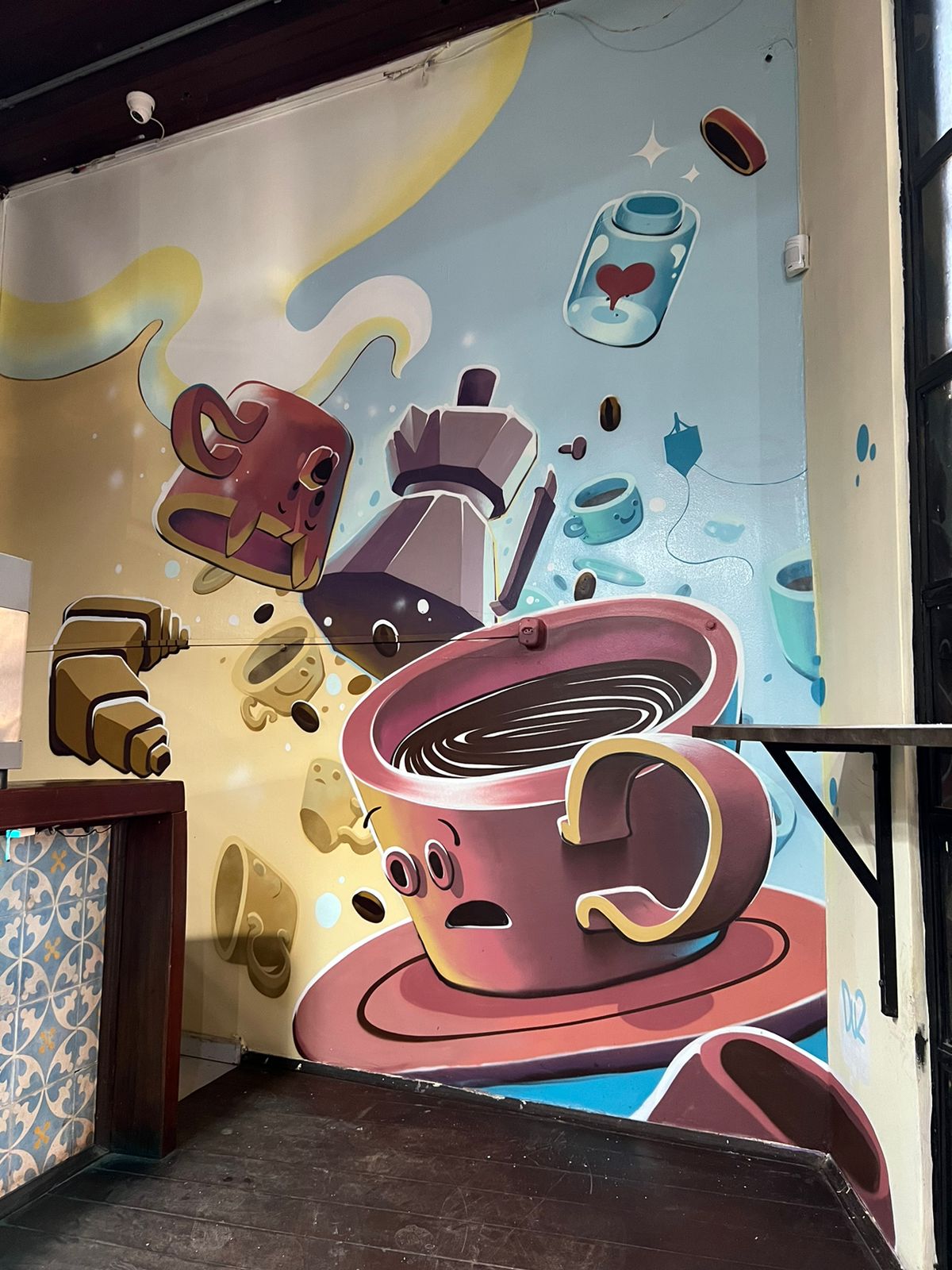 Durante sua estada na praia de Pipa, realizou 3 trabalhos em ambientes externos e 1 interno. Entre eles, cita-se a conveniência A Beba Gela, a cafeteria e bar Hygge, a skatepark Layback Pipa e a barbearia do Paulista.