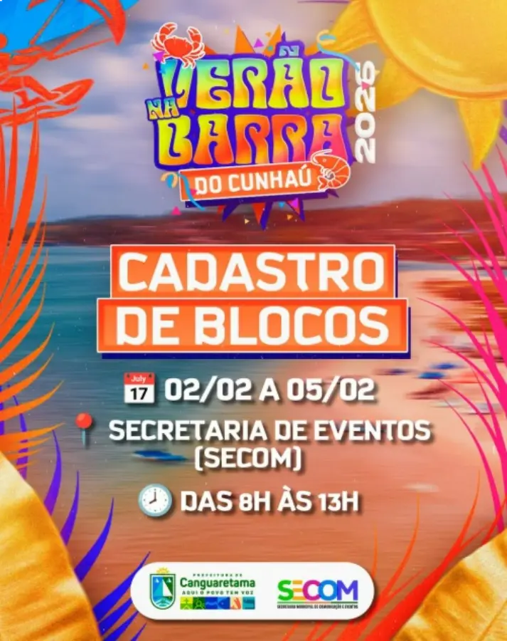A Prefeitura de Canguaretama abriu o período de inscrições para o Cadastro de Blocos do Verão na Barra do Cunhaú, iniciativa voltada aos grupos carnavalescos interessados em participar oficialmente da programação festiva no município.