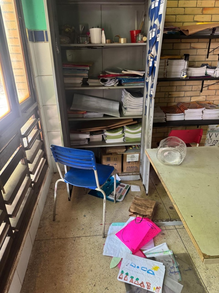 Funcionários relataram profundo abalo com a situação, mas seguem mobilizados para acelerar o processo de recuperação e garantir que a unidade volte a receber os alunos o quanto antes.