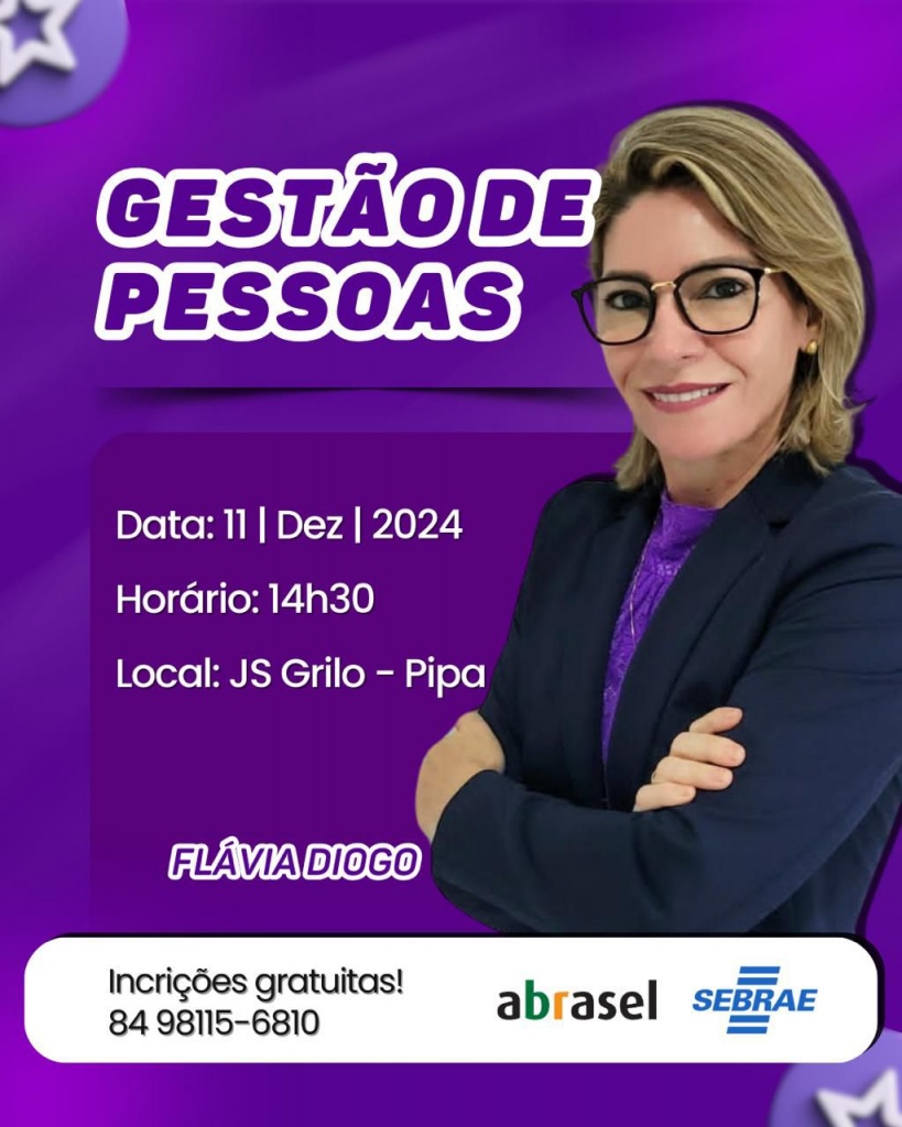 Na próxima quarta-feira, 11 de dezembro, acontece em Tibau do Sul um encontro voltado para empresários e gestores locais. A partir das 14h, o Sebrae ministrará uma palestra sobre Gestão de Pessoas, destacando estratégias essenciais para otimizar a administração de equipes nas empresas.