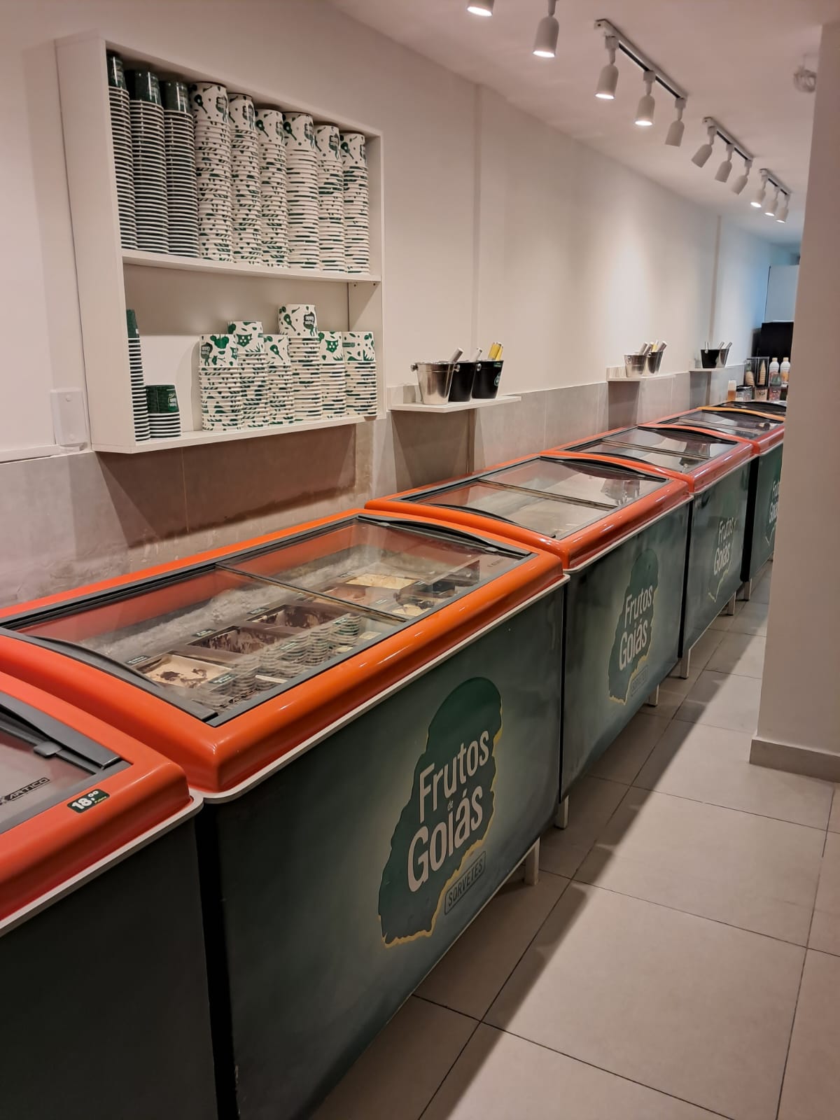 Com um portfólio que inclui mais de 150 produtos, a Frutos de Goiás atende a diferentes preferências e necessidades. Os sorvetes, feitos com 90% de frutas, são o grande destaque, oferecendo um sabor fresco e natural. Além disso, a loja oferece uma variedade de picolés, paletas e sorvetes tradicionais, com opções zero lactose, zero gordura e, para quem busca alternativas mais leves, picolés zero açúcar.