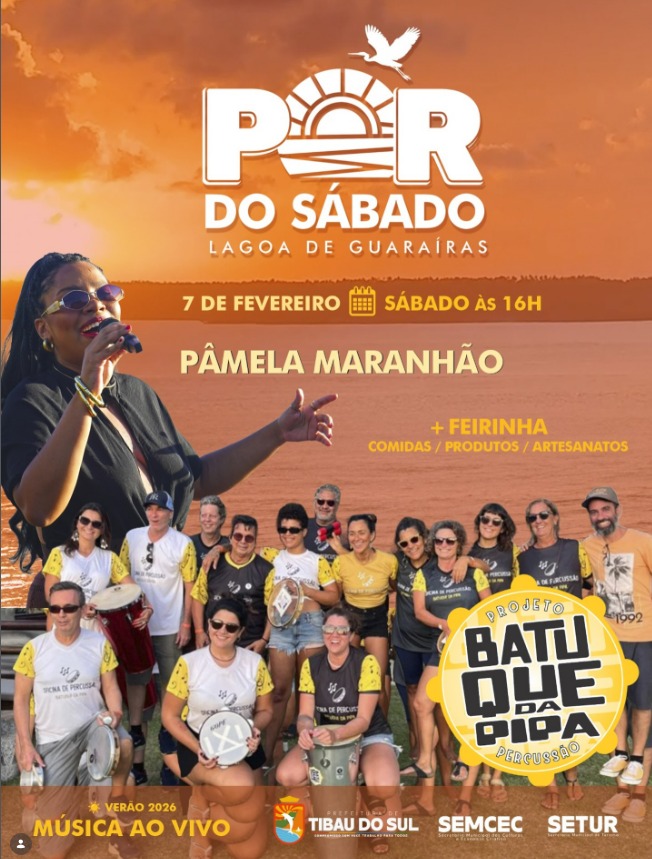A Lagoa de Guaraíras, em Tibau do Sul, será palco neste sábado (7), a partir das 16h, de mais uma edição do “Pôr do Sábado”, evento promovido pela Prefeitura que reúne música ao vivo, cultura e lazer em um dos cartões-postais mais conhecidos do município.