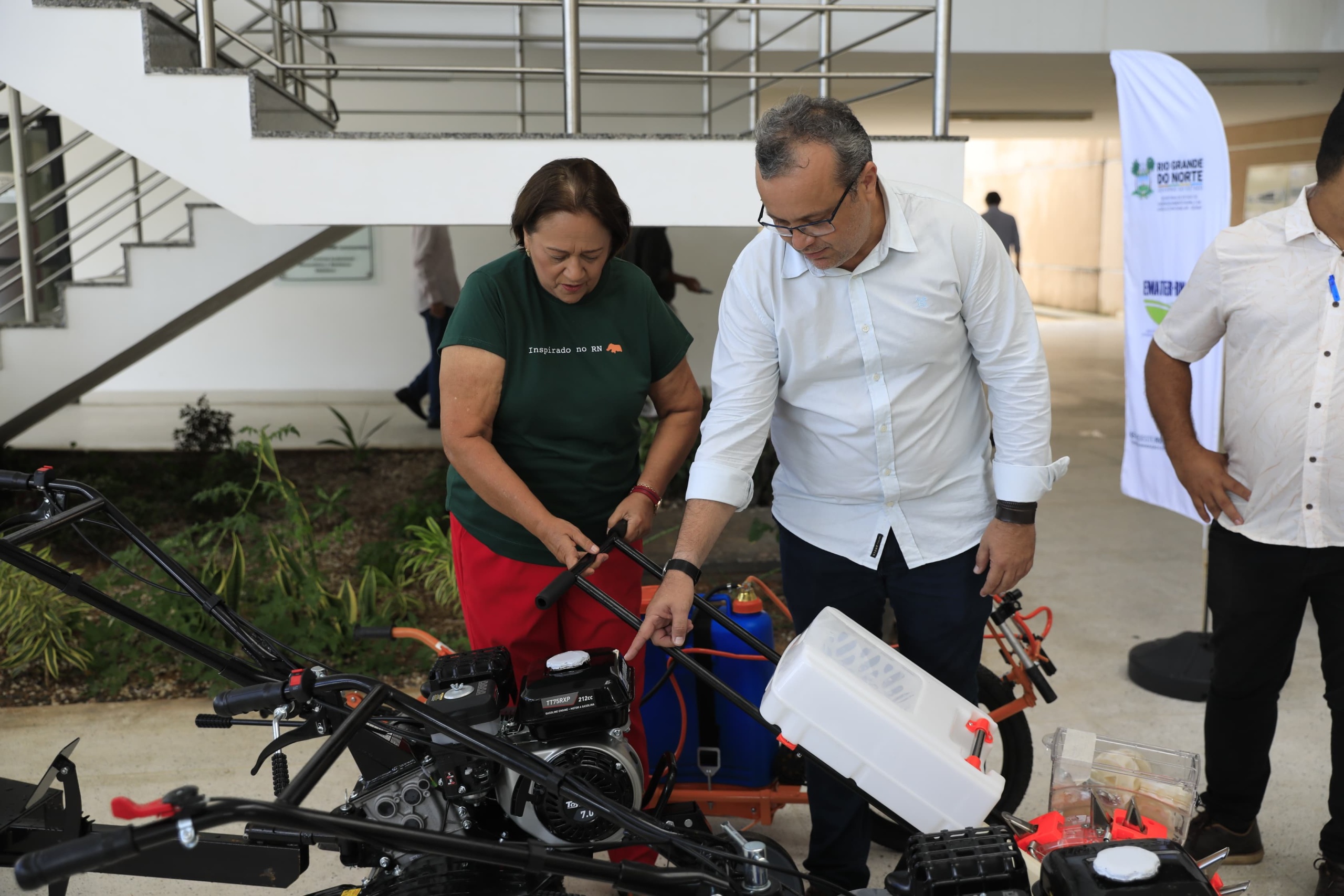 Durante o lançamento, realizando na Escola de Governo, foram entregues 24 kits de mecanização agrícola de pequeno porte, que beneficiarão 220 famílias e 22 organizações da agricultura familiar. Os equipamentos — adequados à realidade das pequenas propriedades do Semiárido — incluem motocultivador, plantadeira, roçadeira, pulverizador, entre outros itens, com investimento de R$ 420 mil, viabilizado por meio de parceria entre MDA, Sedraf e IFRN.