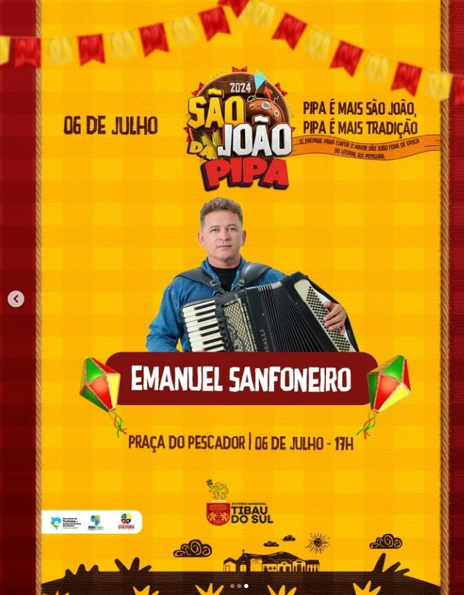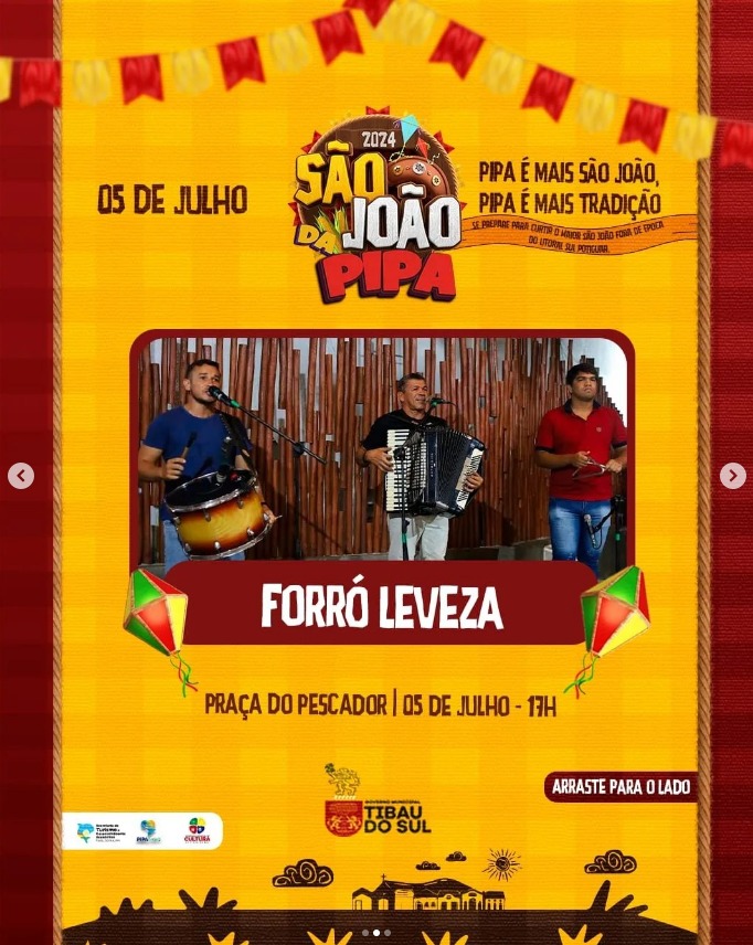 O São João da Pipa 2024,  o “São João fora de Epoca” começa nesta quinta feira na Praia da Pipa,  em Tibau do Sul. O evento vai de 04  a 06 de julho.