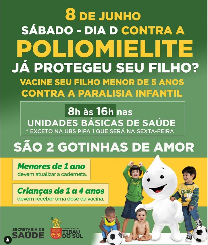 A Campanha Nacional de vacinação contra a Poliomielite está acontecendo em todo o Brasil.